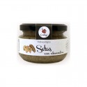 Ingredientes: setas 66%, cebolla, almendra, vinagre de Jerez, aceite de oliva virgen extra, ajo, sal marina, tomillo, perejil, pimienta.